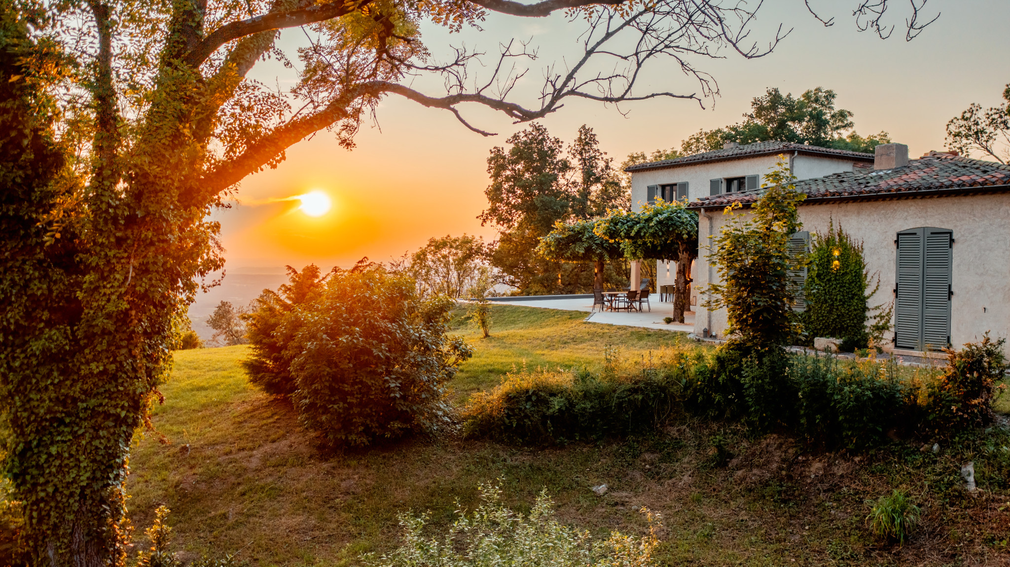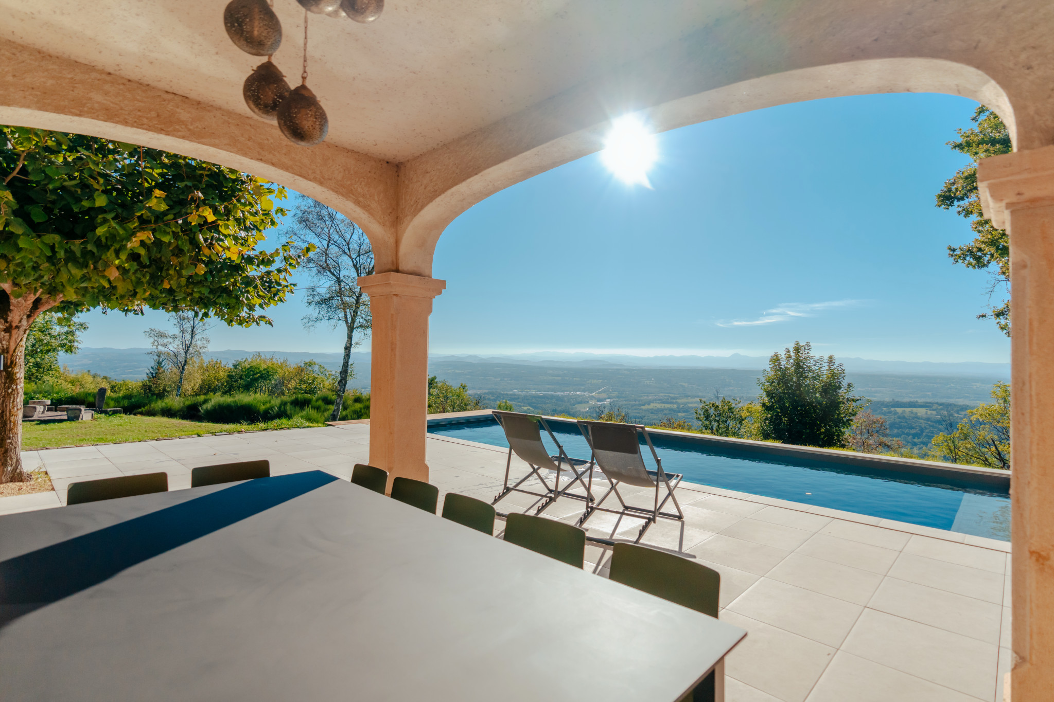 Villa d'exception de 300m² offrant une vue panoramique à 180° sur la chaîne des Puys et les volcans d'Auvergne, patrimoine mondial de l'UNESCO. Un mas provençal authentique, cas unique en Auvergne, niché au cœur d'un domaine de 8 hectares.